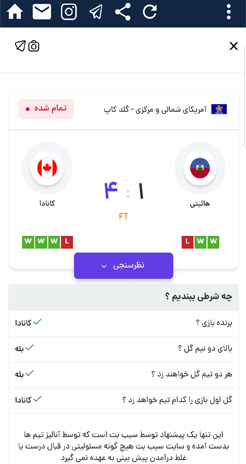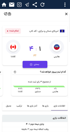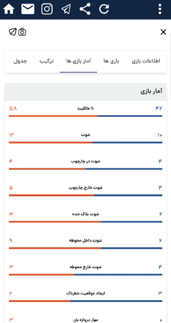قبل از شروع بازی تا انتهای بازی می تونید اخبار و آمار بازی ها رو آنالیز کنید و حرفه ای پیش بینی کنید